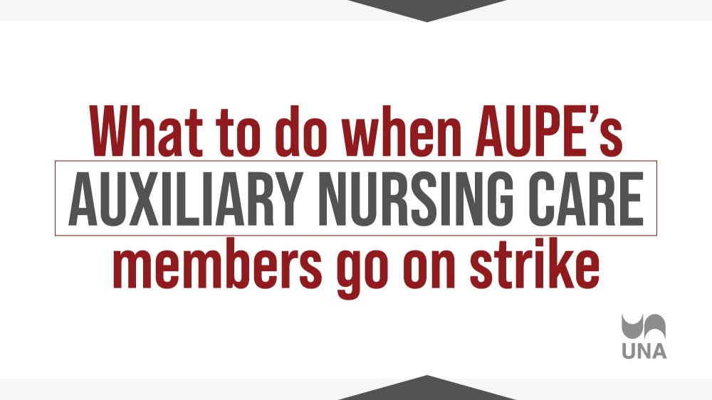 A strike by Licensed Practical Nurses, Health Care Aides and other health care workers represented by AUPE at Alberta Health Services, Recovery Alberta, Primary Care Alberta, Assisted Living Alberta and Allen Gray Continuing Care Centre facilities raises serious concerns for UNA members who may be asked by supervisors to do the work of their striking co-workers.