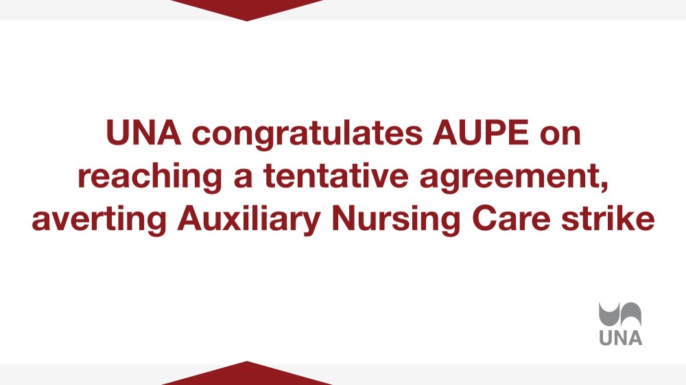 UNA congratulates AUPE on reaching a tentative agreement, averting Auxiliary Nursing Care strike