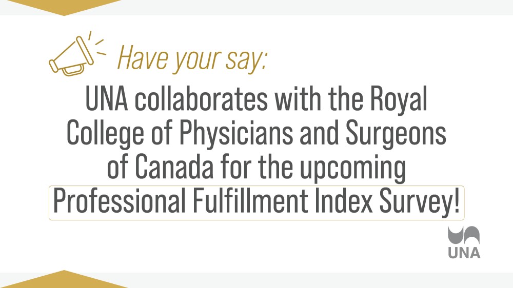 Have your say: UNA collaborates with the Royal College of Physicians and Surgeons of Canada for the upcoming Professional Fulfillment Index Survey!
