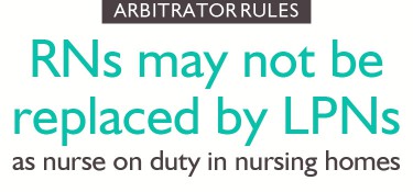 RNs may not be replaced by LPNs as nurse on duty in nursing homes, arbitrator rules