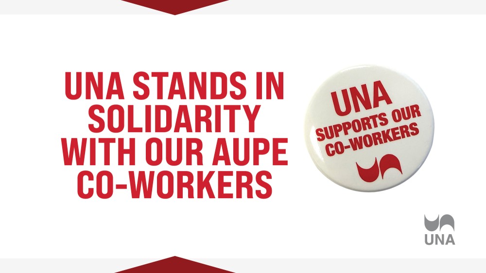UNA supports and stands in solidarity with our AUPE co-workers in their fight for fairness and respect. Today, it was announced that Licensed Practical Nurses, Health Care Aides and other workers represented by the AUPE...[more]