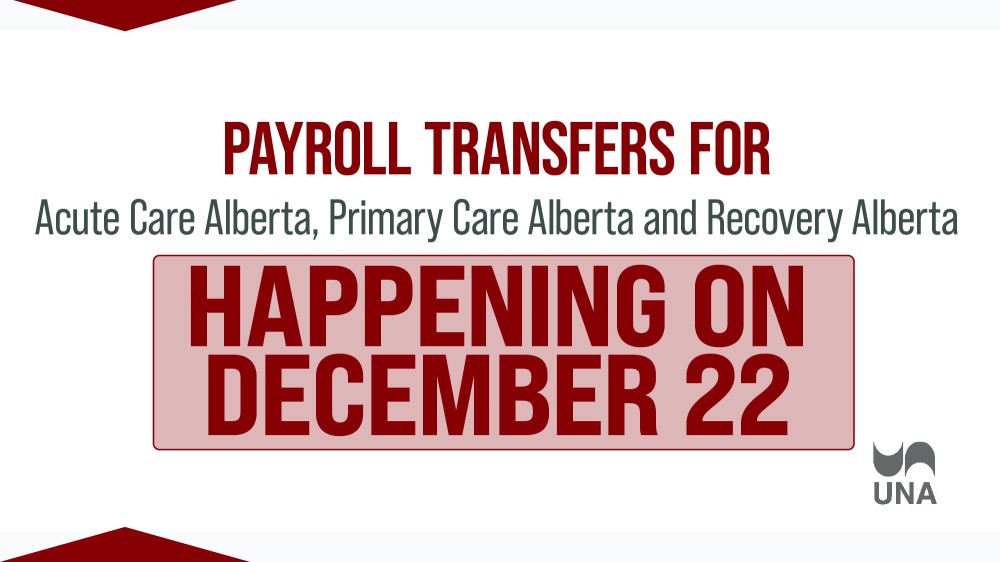 Employees of Acute Care Alberta (ACA), Primary Care Alberta (PCA), and Recovery Alberta (RA) represented by United Nurses of Alberta will be transferred from the Alberta Health Services payroll system to the payroll of their new employer on...[more]